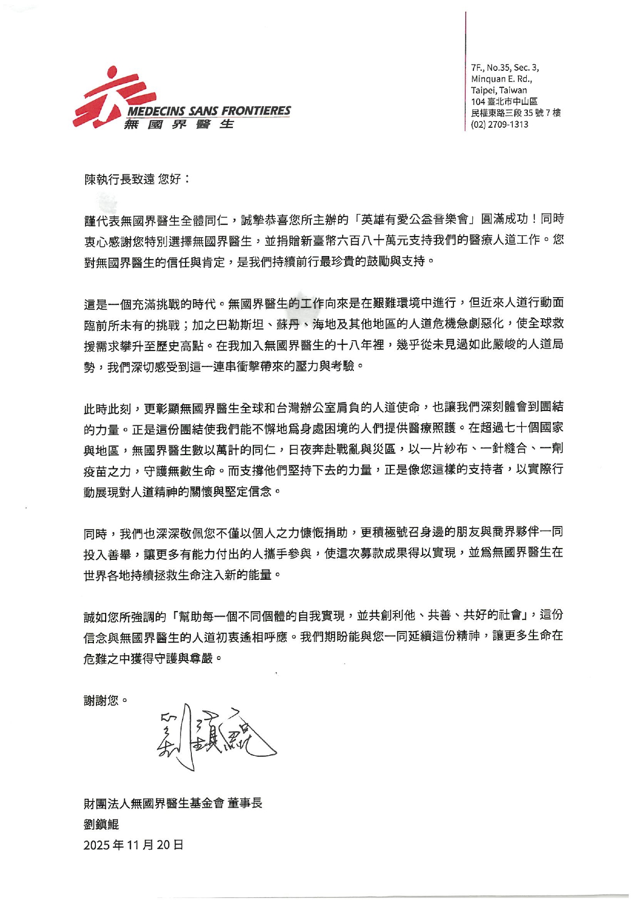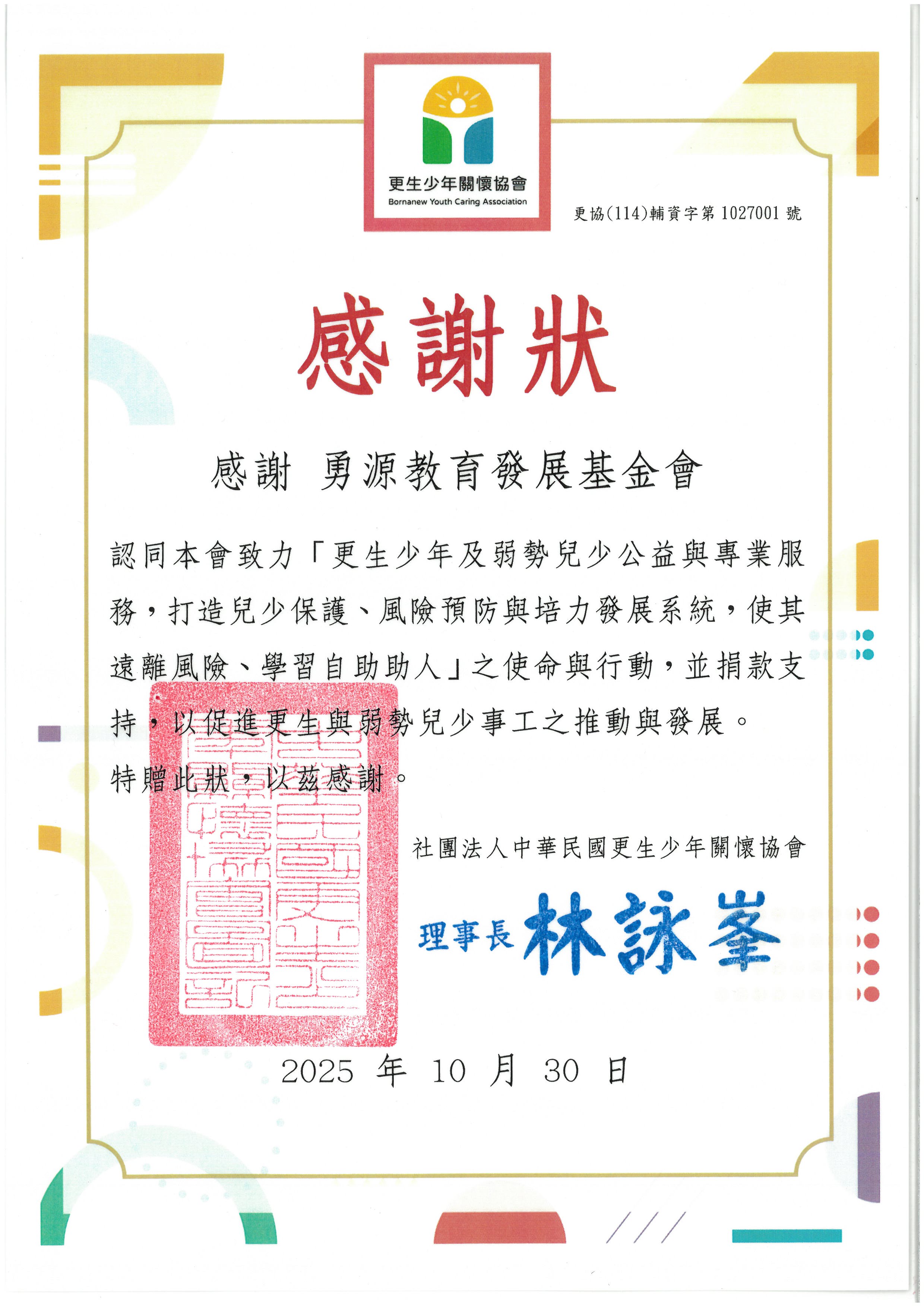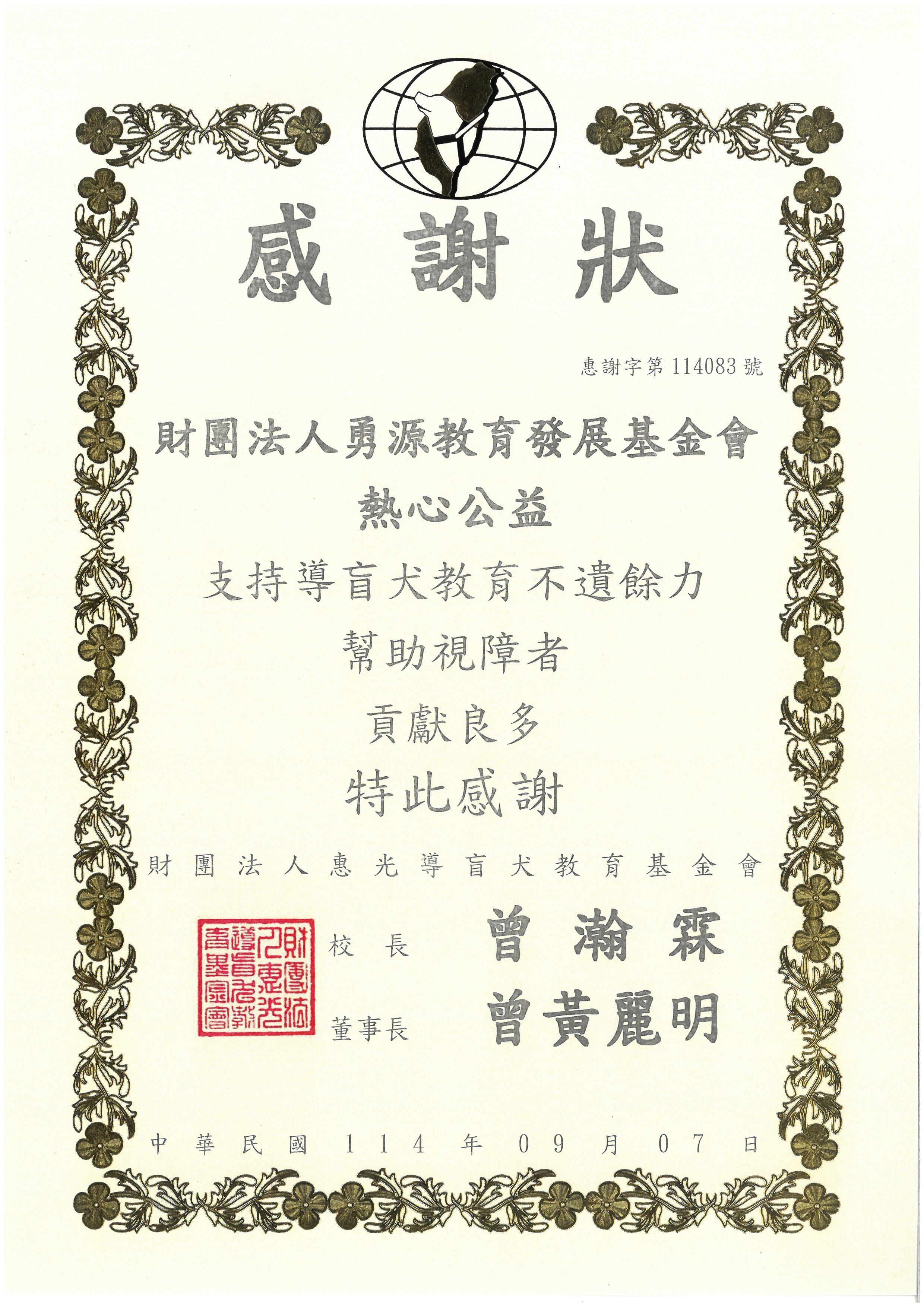 來自捐贈單位的感謝函 & 感謝狀